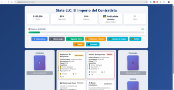 A strategic turn-based management game where you navigate the complex world of government contracts, political relationships, and corporate corruption. Build your construction empire while managing resources, relationships, and avoiding federal investigations.