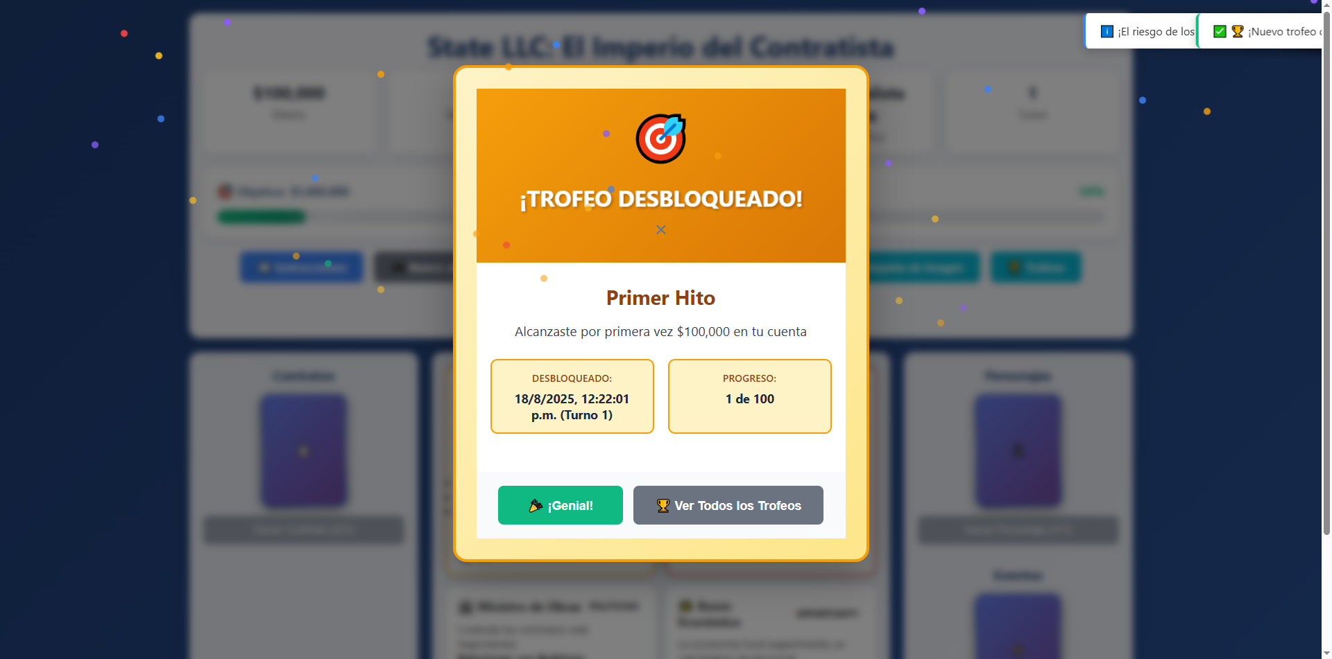 - Build political networks to unlock the "Sin Dados Necesarios" trophy (0% risk contracts)