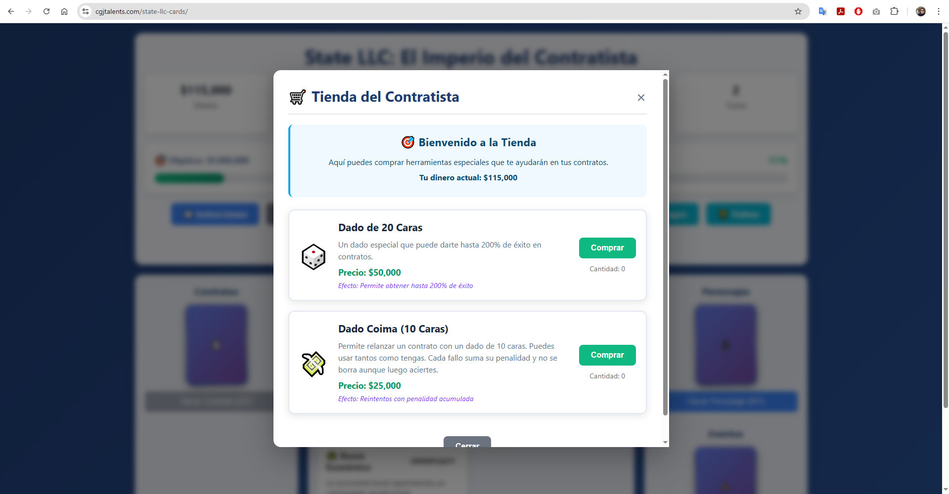 - The Coima die (💸) appears in the contract modal when you have at least one in inventory