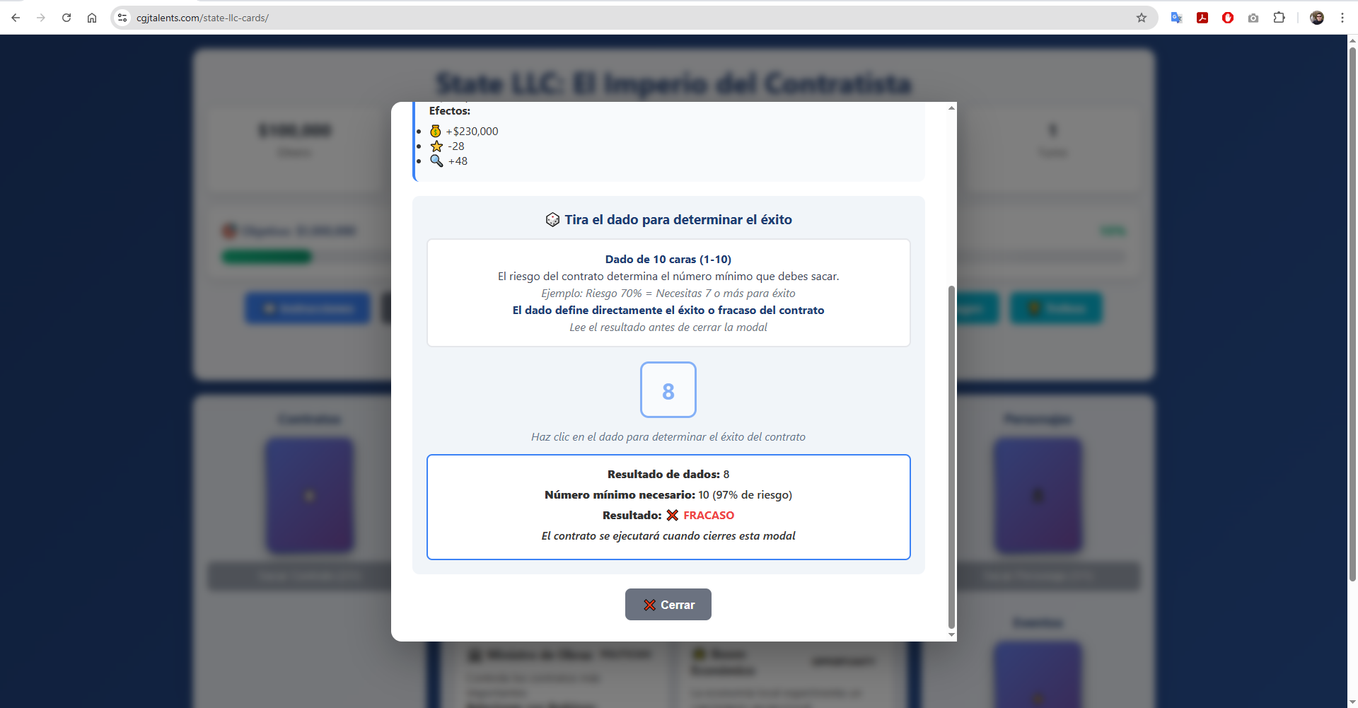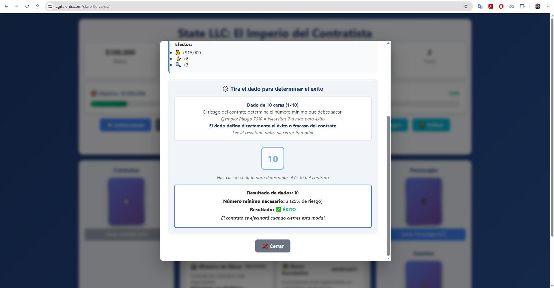 - 📊 Jugador del Quinto: Complete a contract with exactly 20% risk